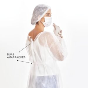 Avental confeccionado em TNT Cert.Anvisa (tecido não tecido), 100% polipropileno, protege o corpo do profissional da saúde ou do paciente, contra possíveis contaminações por líquidos corpóreos ou substâncias contaminantes. TNT – tecido não tecido.