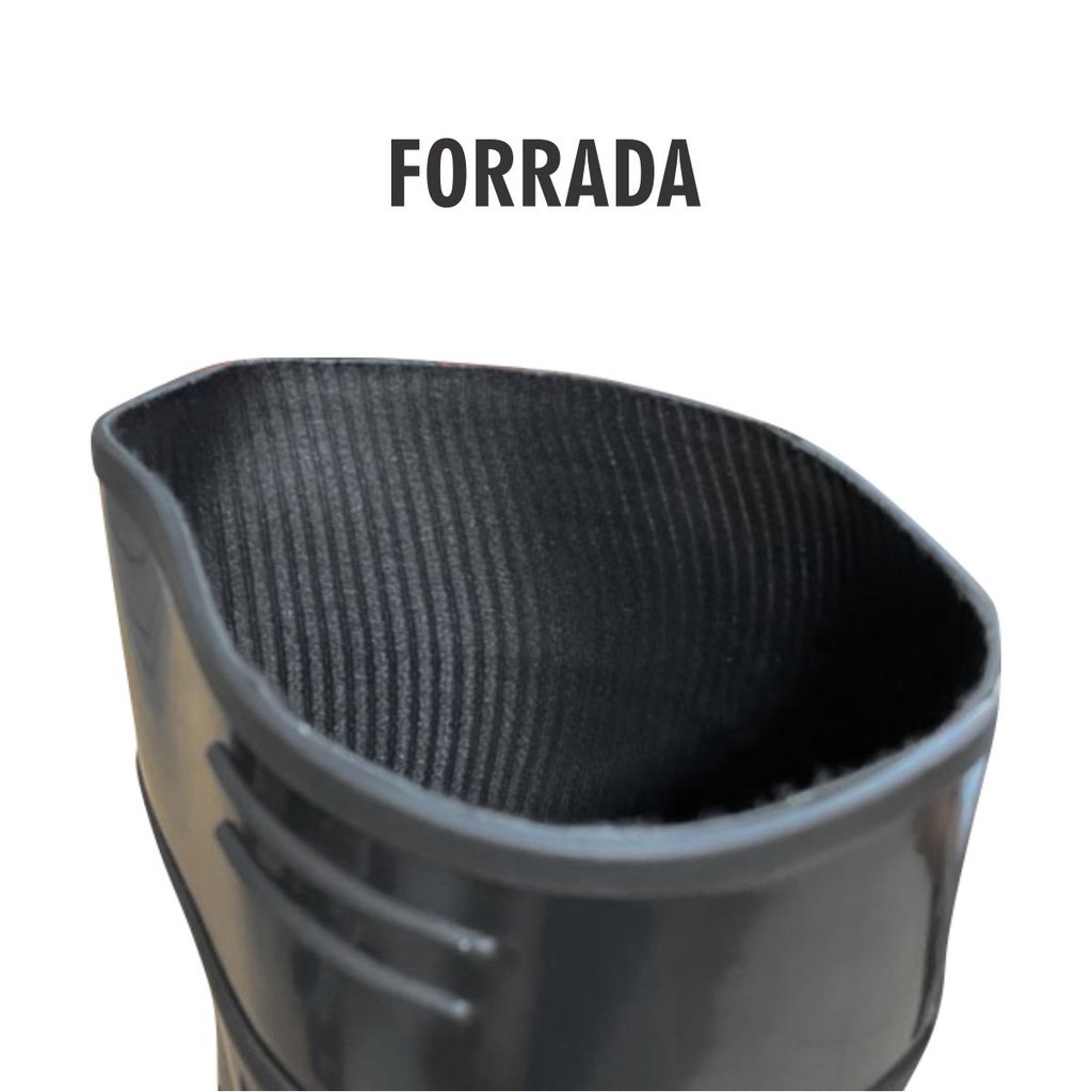 Bota de uso ocupacional, tipo bota (impermeável) injetada em uma só peça. Calçado Ocupacional, classe II, OB SRA FO. Produto desenvolvido com material maleável, cabedal com 2,7mm de espessura, com design que facilita o calçar e descalçar. Solado com ótima aderência e ranhuras que impedem o acúmulo de sujeiras.