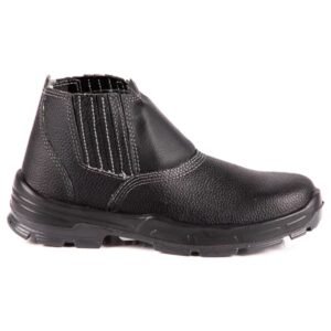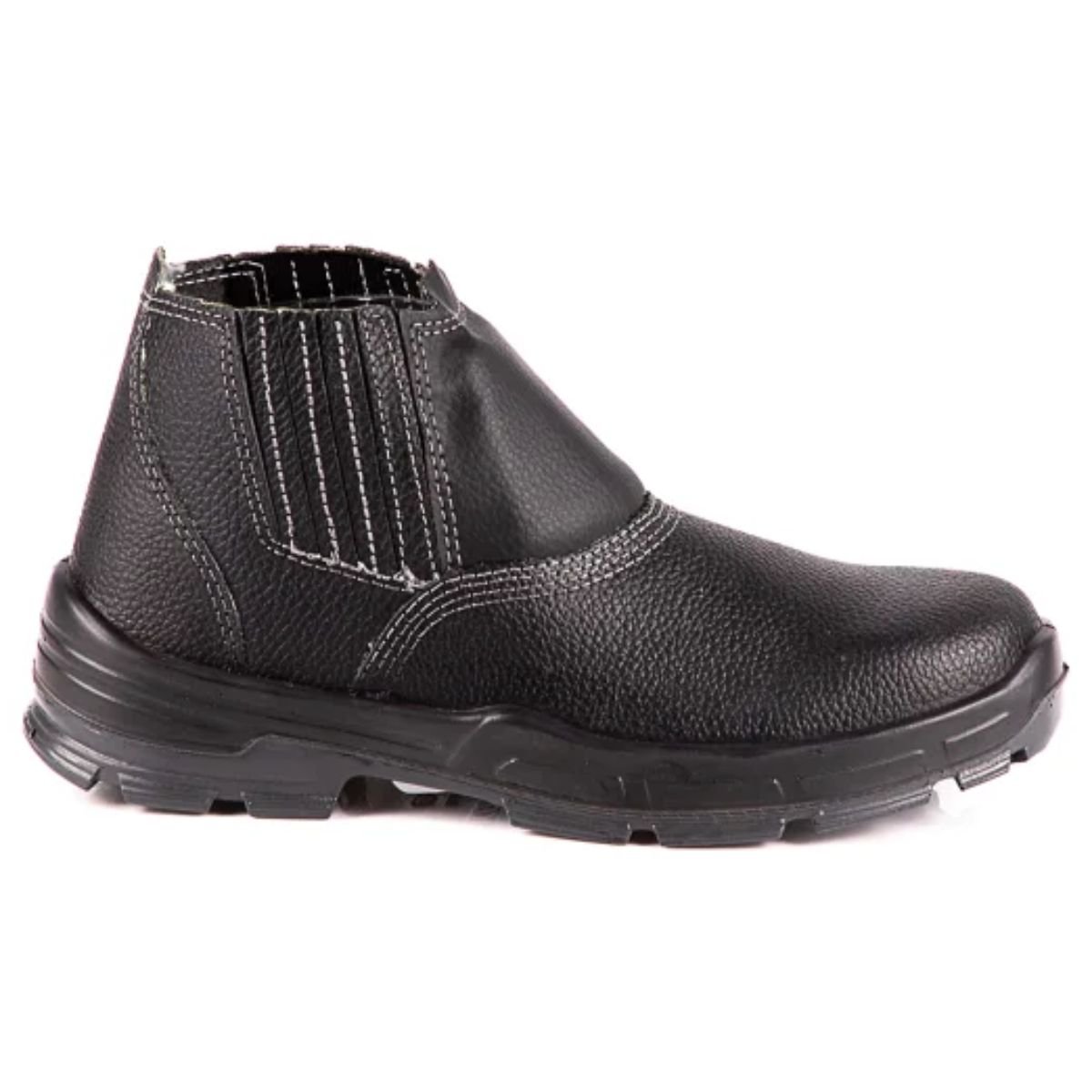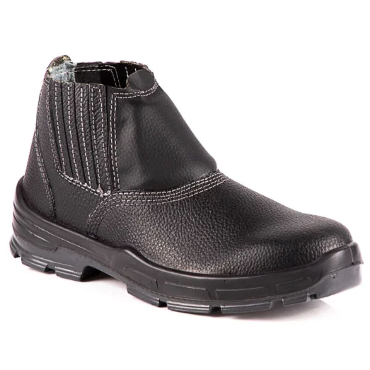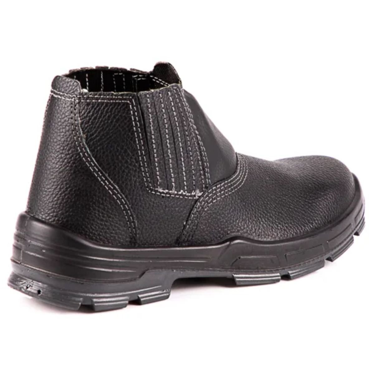 Botina de proteção com fechamento em elástico recoberto confeccionado em couro estampa relax com dorso acolchoado, elástico lateral recoberto, forração interna na gáspea e tecnologia Dry Comfort; tecido que absorve a umidade gerada pelo suor.