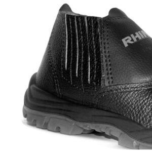 Calçado de segurança tipo Bota, cabedal em couro na cor PRETA, constituído de gáspea em couro, traseira em couro e inserto em couro, colarinho forrado e estofado, fechamento através de elástico, palmilha de montagem fixada pelo sistema strobel, confeccionada em material não tecido, forração em material não tecido, forma ergonômica (alto conforto), solado bidensidade com dupla injeção à base de PU (Poliuretano), antiderrapante, absorção de impacto na região do calcanhar, resistente a óleo combustível.