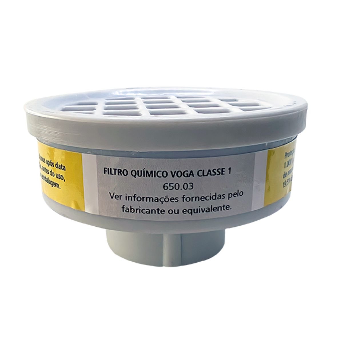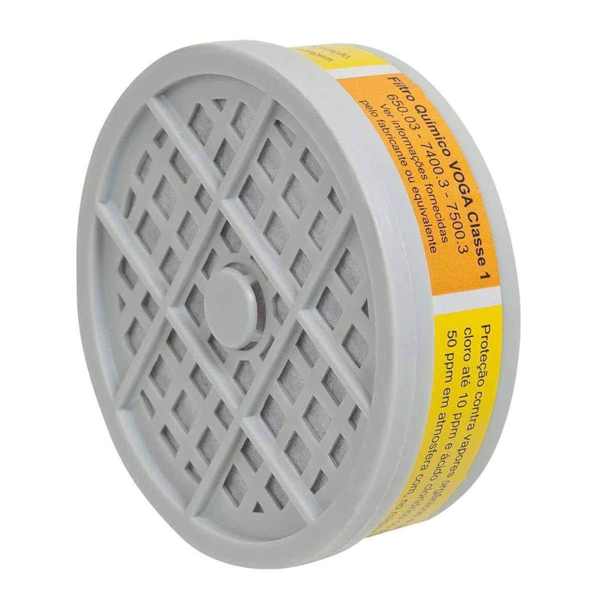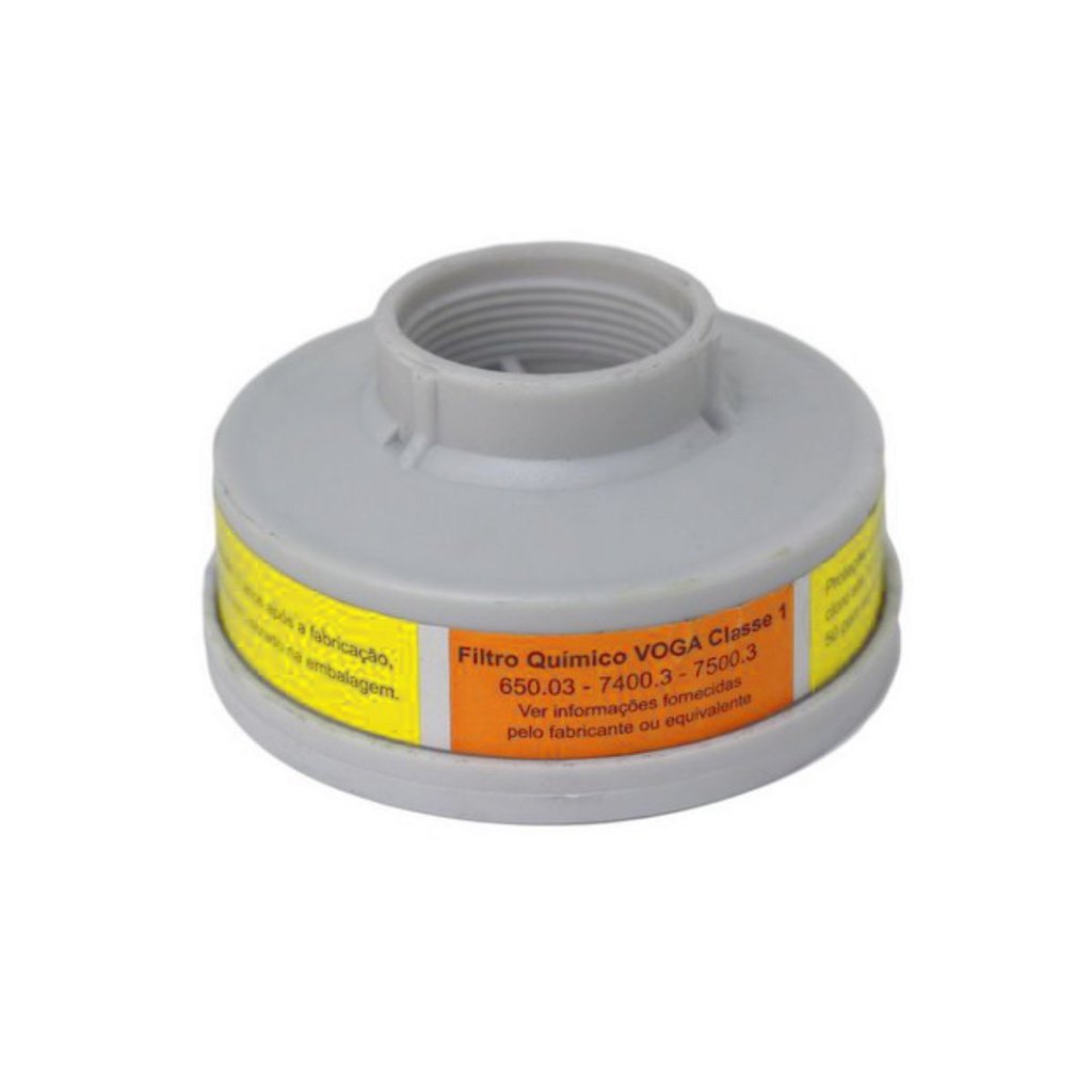Cartucho VO/GA para máscara respiratória semifacial Plastcor. Filtro químico VO/GA (vapores orgânicos e gases ácidos) indicado contra vapores orgânicos e gases ácidos até 1000ppm, cloro até 10ppm e ácido clorídrico ou dióxido de enxofre até 50ppm ou 10 vezes o seu limite de tolerância ou até a concentração IPVS, o que for menor.