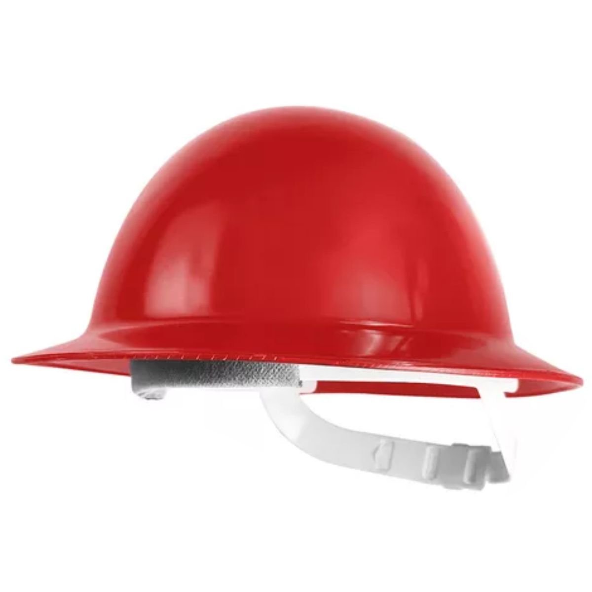 Capacete de segurança com aba total, copa lisa e injetado em polietileno de alta densidade;