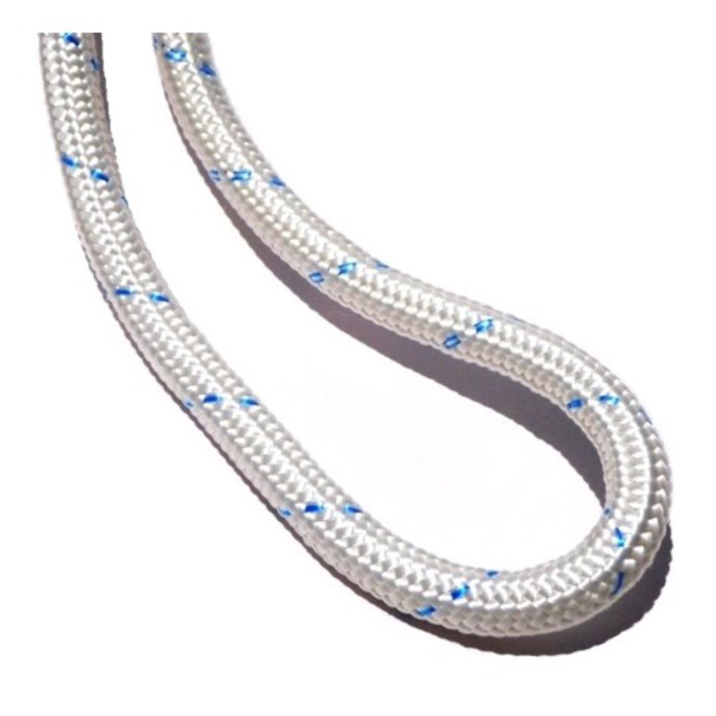 Corda constituída em trançado triplo e alma central. Trançado externo em multifilamento de Poliamida, trançado intermediário e o alerta visual na cor azul em multifilamento de polipropileno ou poliamida na cor azul com o mínimo de 50% de identificação, não podendo ultrapassar 10% da densidade linear. Traçado interno em multifilamento de poliamida e alma central torcida em multifilamentos de poliamida. Possui identificação interna gravada NR 18.16,5 ISO 1140 1990