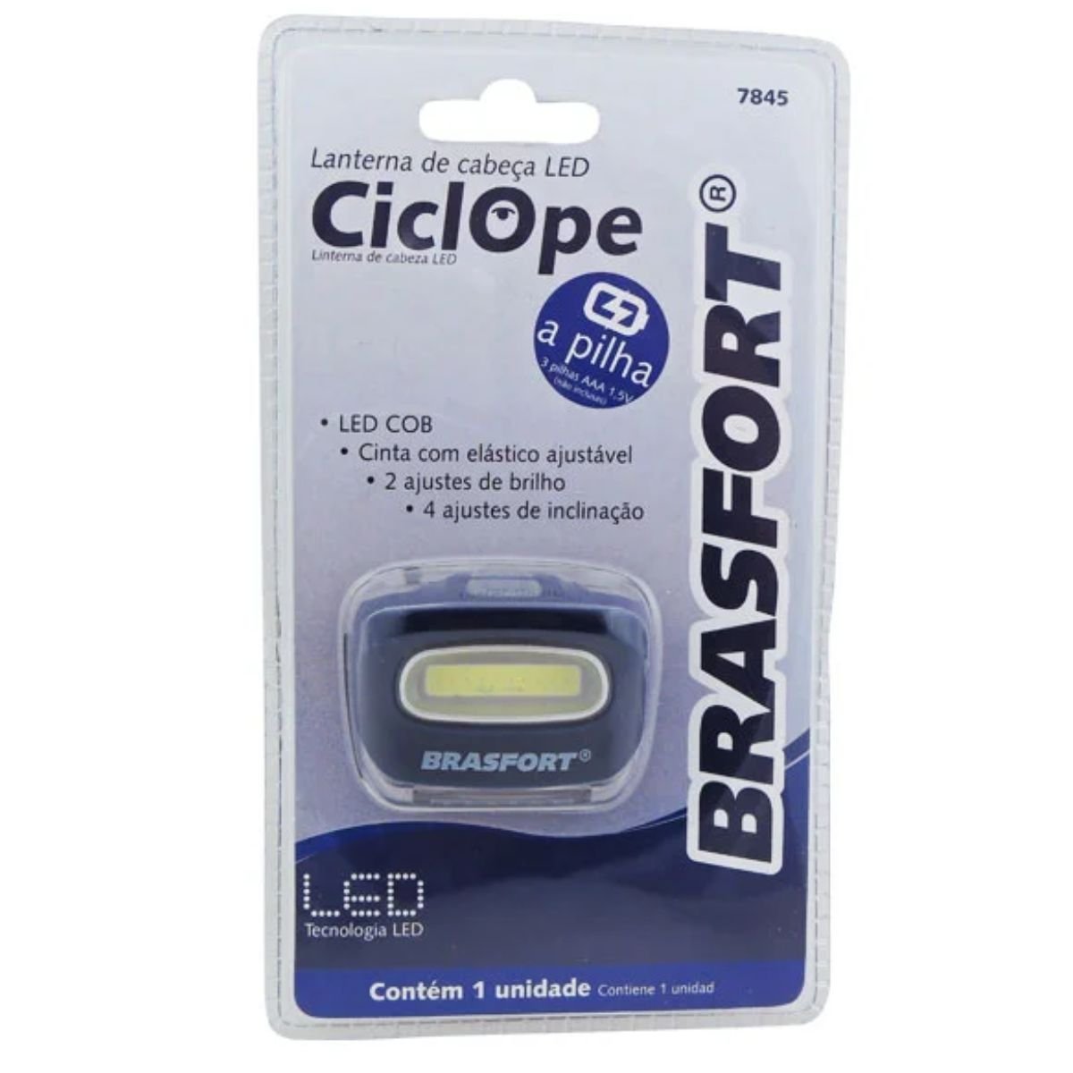 A Lanterna Led Ciclope de Cabeça Brasfort é um produto utilizado por ciclistas, montanhistas, corredores, escaladores e pescadores, por apresentar cinta elástica pode ser fixada na cabeça, capacete ou em materiais como acessórios de iluminação e sinalização. É um produto ideal para ser utilizado em locais de baixa iluminação, descartando o uso das mãos para o transporte, além de ser leve é um produto resistente com uma boa iluminação.