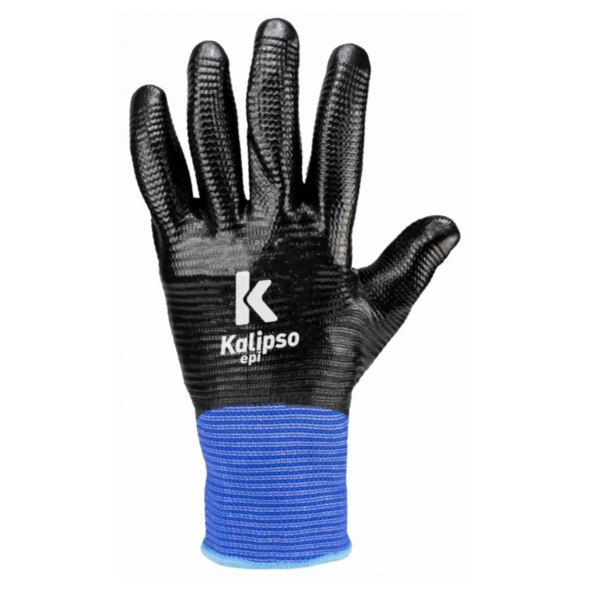 Luva de segurança confeccionada em poliéster, revestimento externo total em borracha nitrílica. Punho em elástico com acabamento em overloque.
