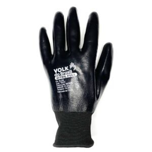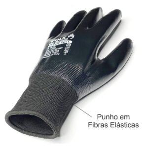 PROTEÇÃO QUÍMICA E MECÂNICA – Revestimento na palma e dorso com borracha nitrílica que protege as mãos e os dedos dos agentes mecânicos e oleosos, graxas e outros fluídos químicos