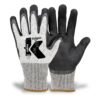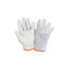 Luva de segurança tricotada em fios de algodão e poliéster, palma e face palmar dos dedos com pigmentos antiderrapantes de PVC, extremidade dos dedos com reforço de borracha de PVC. Punho com elástico, com acabamento overloque.