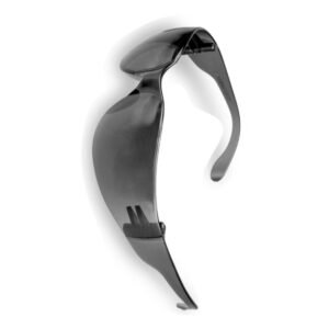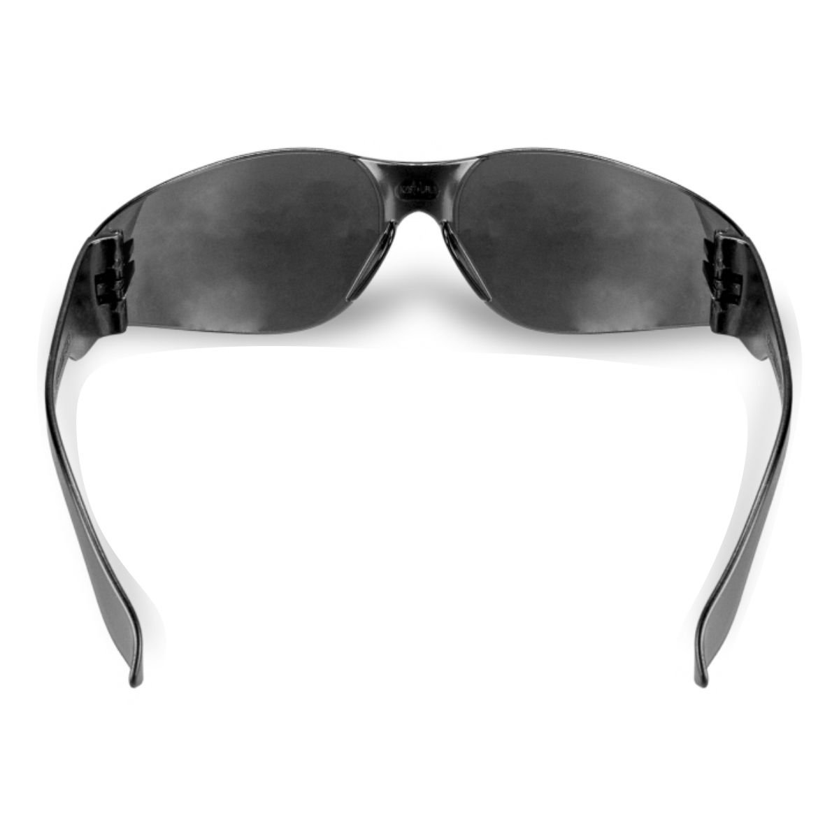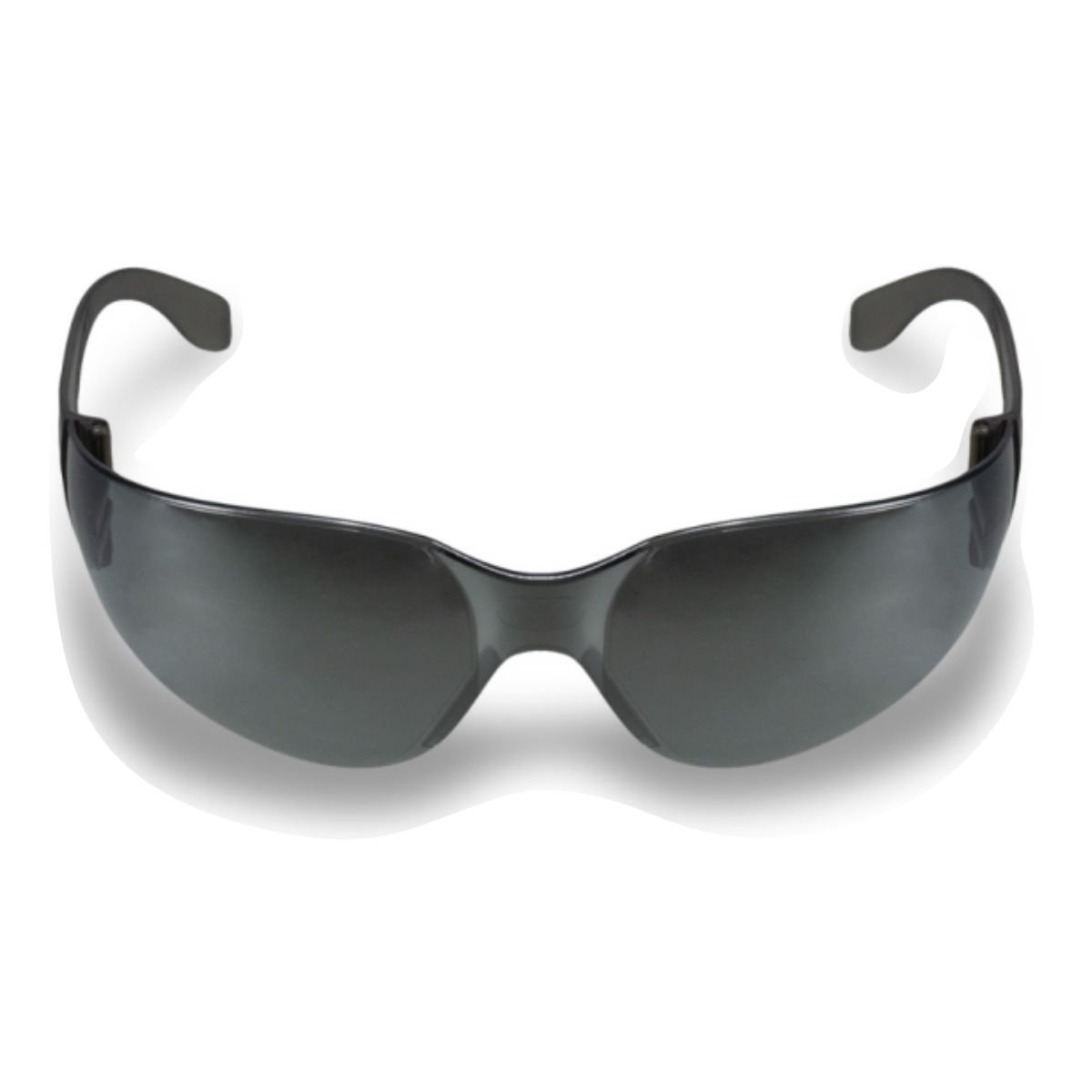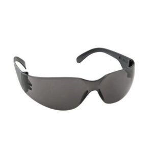 Óculos de segurança com armação e visor confeccionados em uma única peça de policarbonato com ponte e apoio nasal injetado na mesma peça, hastes tipo espátula confeccionadas do mesmo material do visor e articuladas nas extremidades do visor por meio de parafusos metálicos.