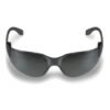 Óculos de segurança com armação e visor confeccionados em uma única peça de policarbonato com ponte e apoio nasal injetado na mesma peça, hastes tipo espátula confeccionadas do mesmo material do visor e articuladas nas extremidades do visor por meio de parafusos metálicos.