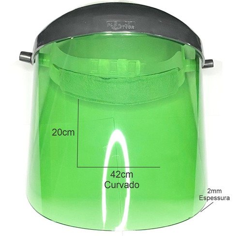 Visor em policarbonato verde de 2 mm de espessura e 20 cm de altura.