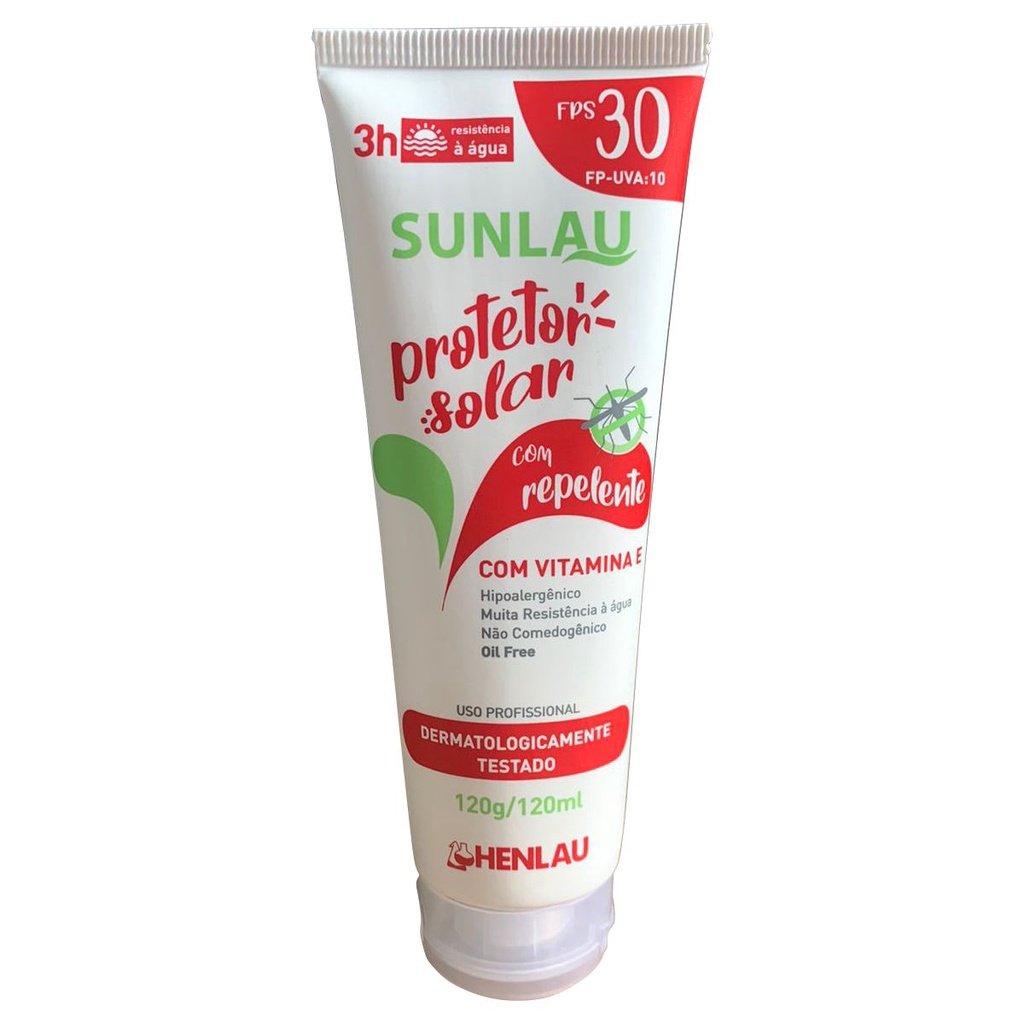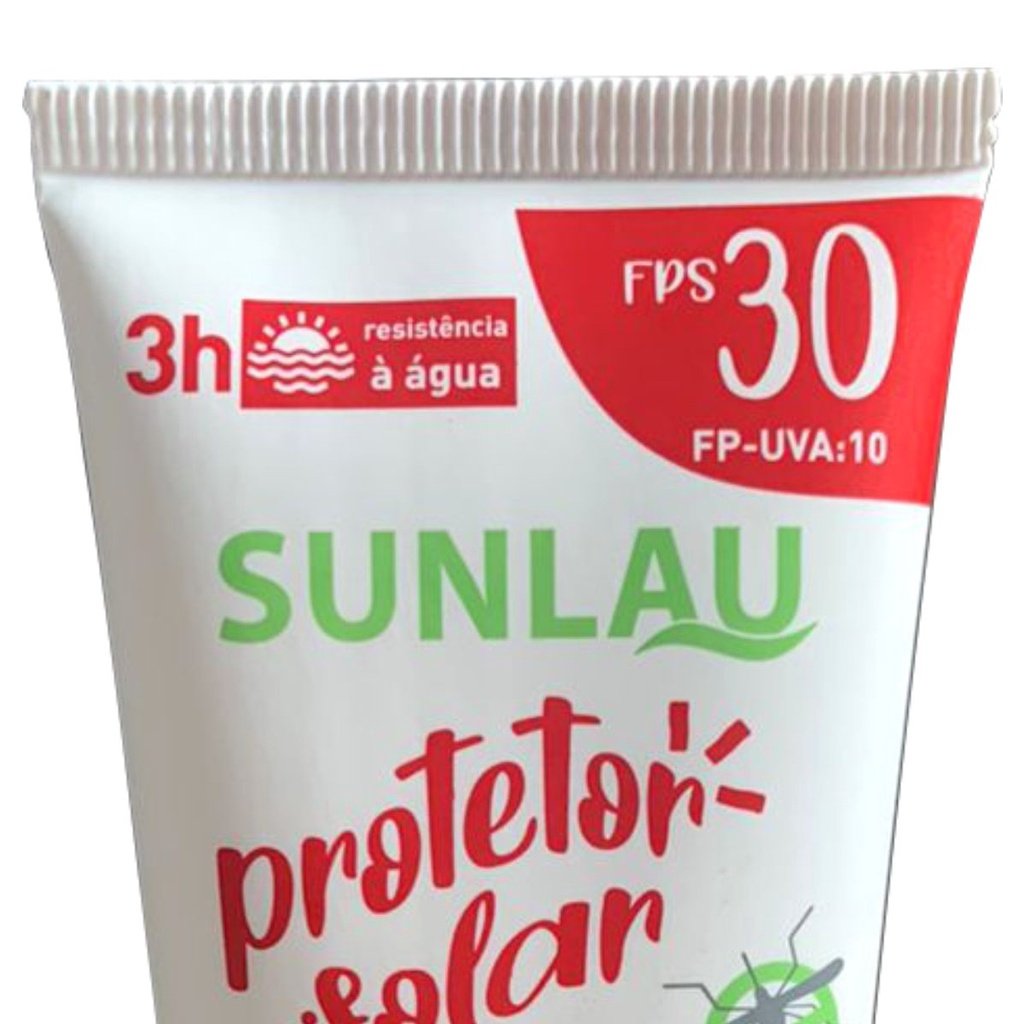 SUNLAU FPS 30 PROTETOR SOLAR com REPELENTE DE INSETOS 2 em 1 com VITAMINA E protege a pele contra a ação nociva dos raios ultravioleta dos tipos UVA e UVB emitidos por raios solares e por radiações provenientes de trabalhos com soldas elétricas e outras fontes emissoras. O produto possui 4h de proteção contra Aedes aegypti comprovado por laudo realizado em laboratório credenciado na ANVISA.
