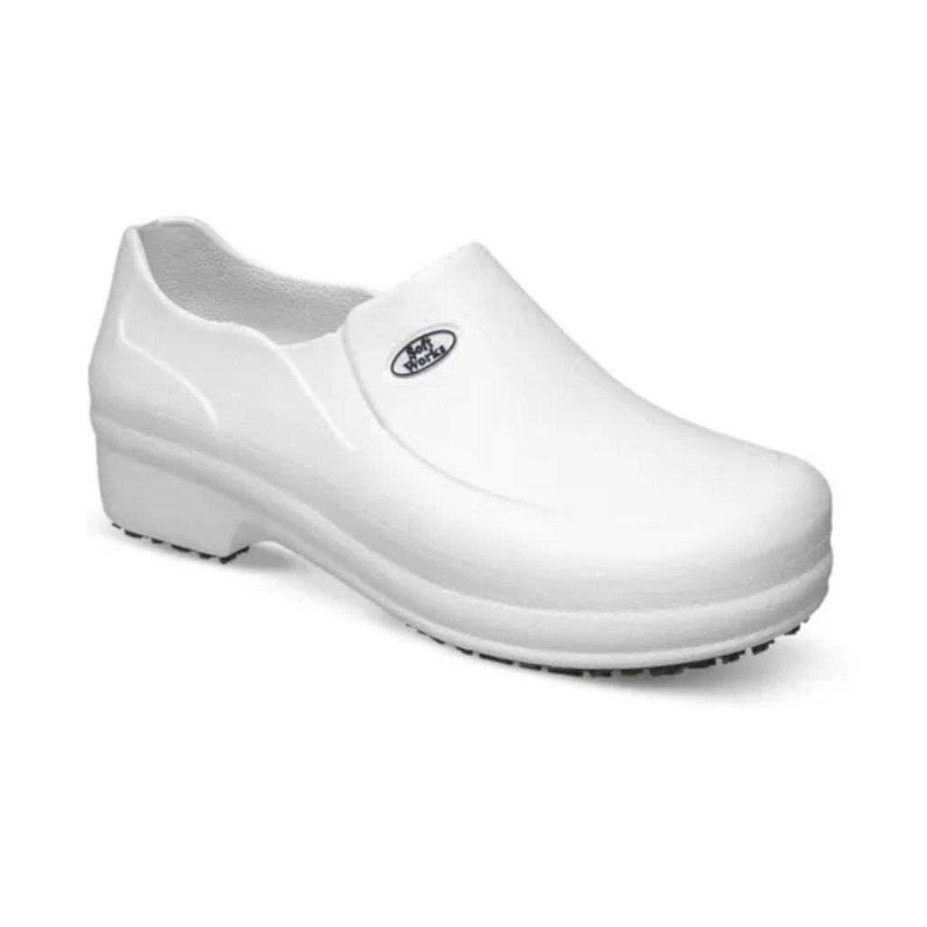 Soft Works II é um calçado especializado para o uso profissional, material EVA, fechado na parte superior e no calcanhar, o que garante segurança aos pés, além de possuir solado antiderrapante resistente a óleo.